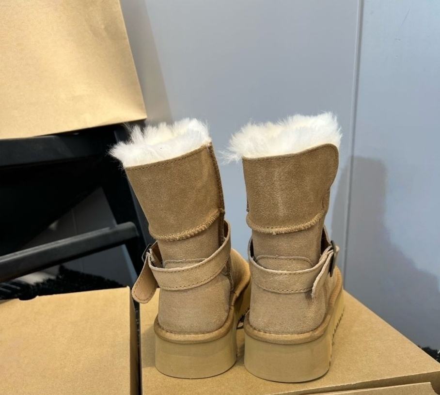 รองเท้าบูทผู้หญิงแบบขายส่ง ดีไซน์เนอร์สั่งทำพิเศษ บุหนังแท้ กันน้ำ หนังแกะแท้ พื้นรองเท้าขนสัตว์กันลื่น รองเท้าบูทข้อเท้า รองเท้าสำหรับใส่ในหิมะ