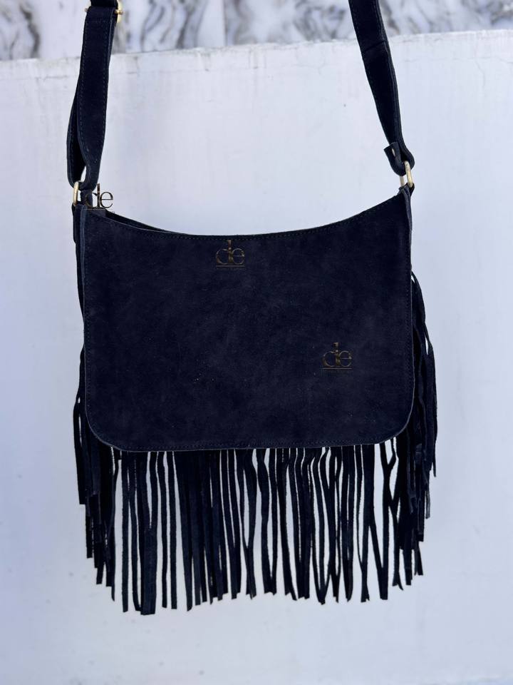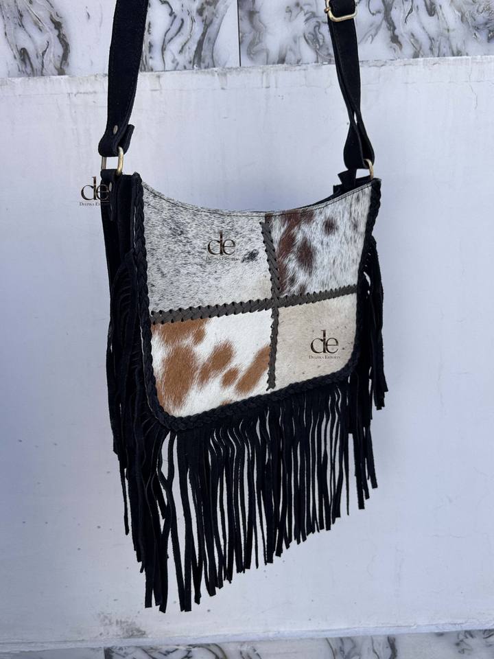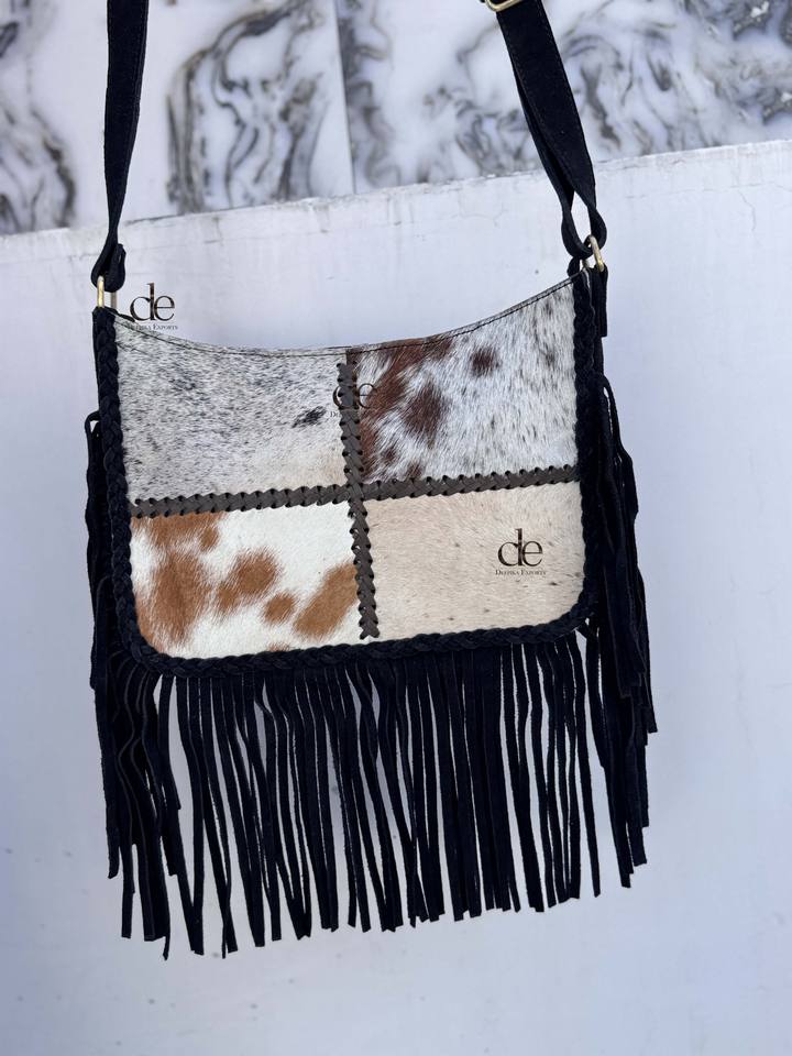 กระเป๋าหนังวัวแท้แบบสะพายข้าง แต่งขนสัตว์ดีไซน์เนอร์ แฟชั่นสไตล์ยิปซี