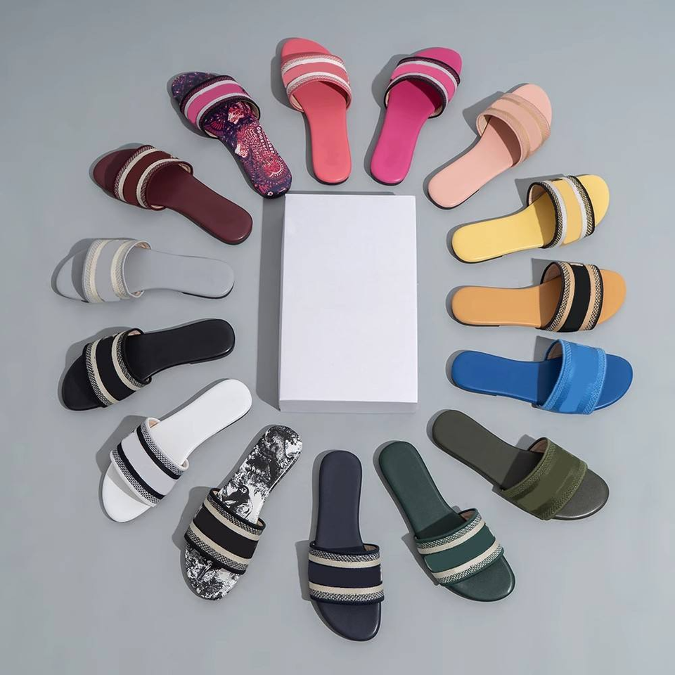 รองเท้าแตะดีไซน์เนอร์ขายส่ง รองเท้าแตะปักลายแบบแบน รองเท้าแตะชายหาดสุดหรูสำหรับผู้หญิง รองเท้าแตะดีไซน์เนอร์สุดหรูสำหรับผู้หญิง