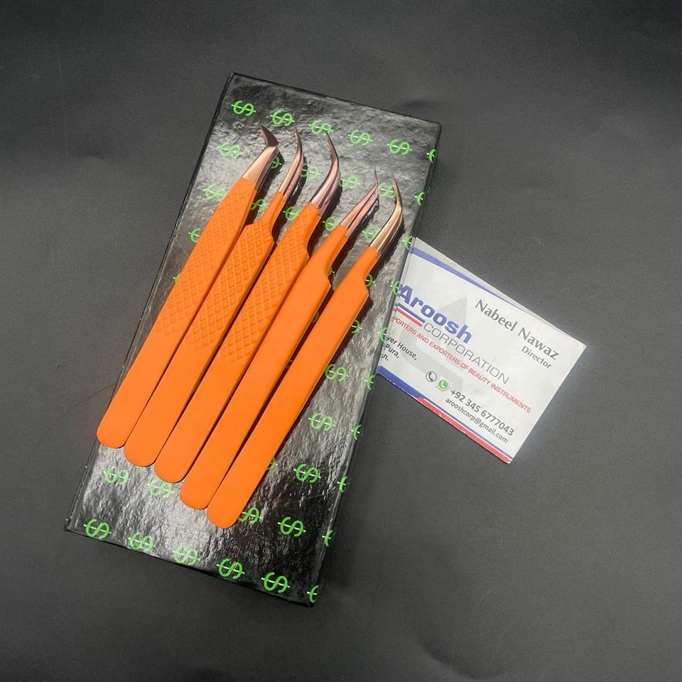 แหนบต่อขนตาจับเพชรปลายสีโรสโกลด์และส้มสแตนเลสทนทานใช้งานได้อย่างยั่งยืน