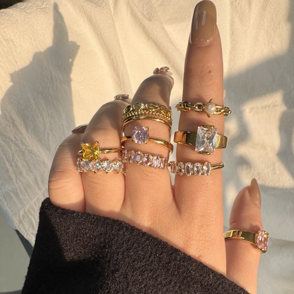 แหวนเพชรขายส่ง กันน้ำ ปรับขนาดได้ ทำจากสแตนเลส ชุบทอง 18k ประดับเพชรซิคอน สำหรับงานแต่งงานและหมั้นหมาย สำหรับผู้หญิง