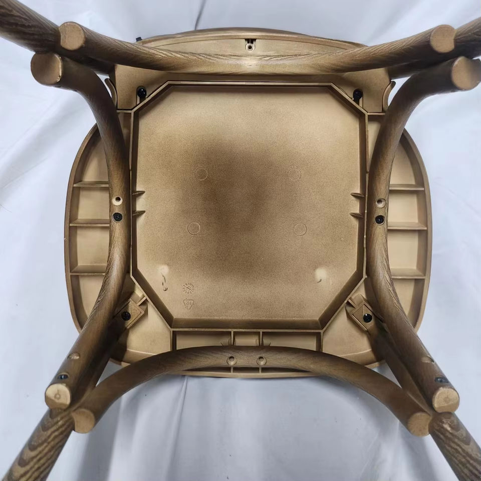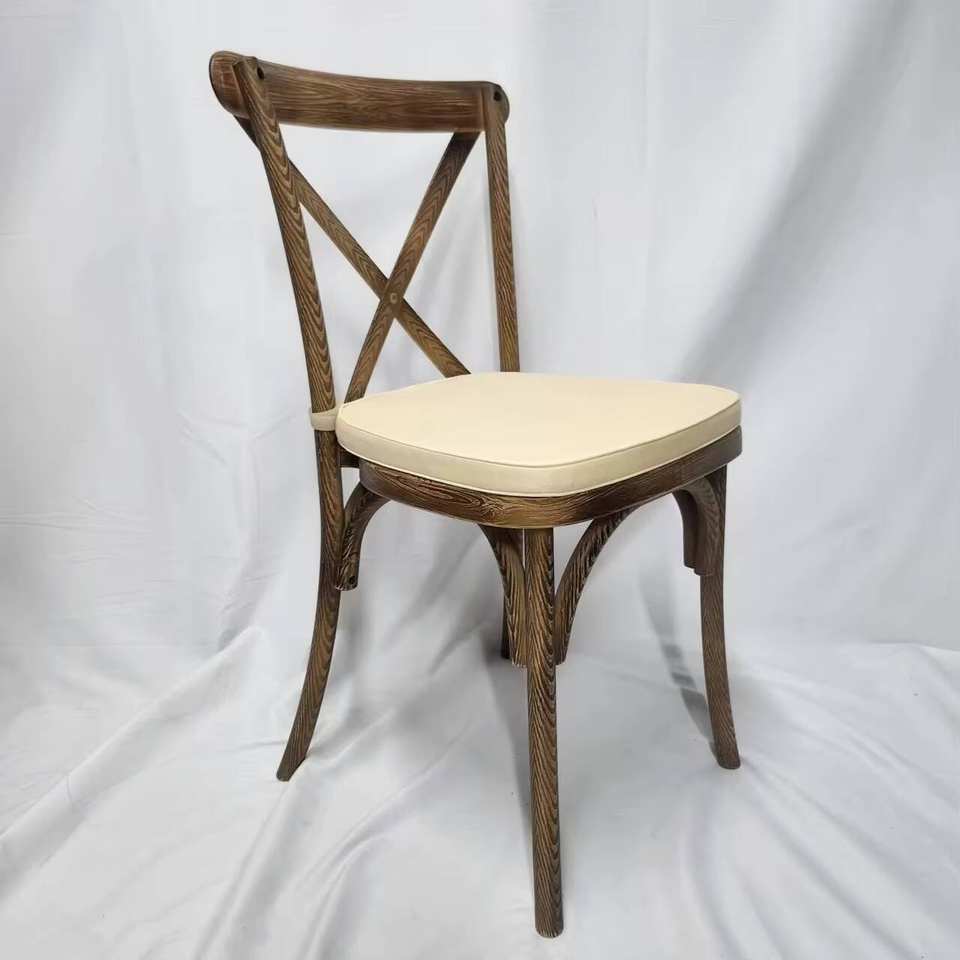 เก้าอี้พลาสติกทรงครอสแบ็คสีน้ำตาลลายไม้ วินเทจ แบบซ้อนได้ เบาะนุ่มพิเศษ สำหรับงานจัดเลี้ยงขายส่ง