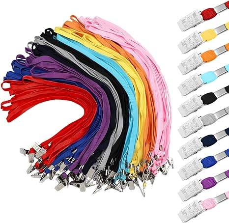 เชือกเส้นเล็กและที่ใส่บัตรแบบแบนพร้อมสายคล้องมีตะขอเกี่ยวแบบหมุนได้สำหรับโรงเรียนในสำนักงาน