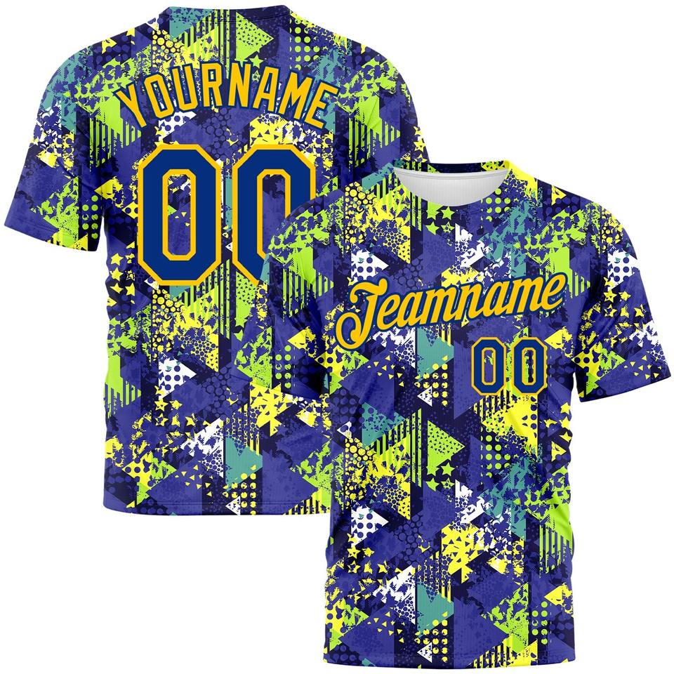 Wholesale Direct shirts Engro Sportswear industry Custom Graffiti Pattern Royal-Gold 3D Geometric Figures Triangle Dots T-Shirt