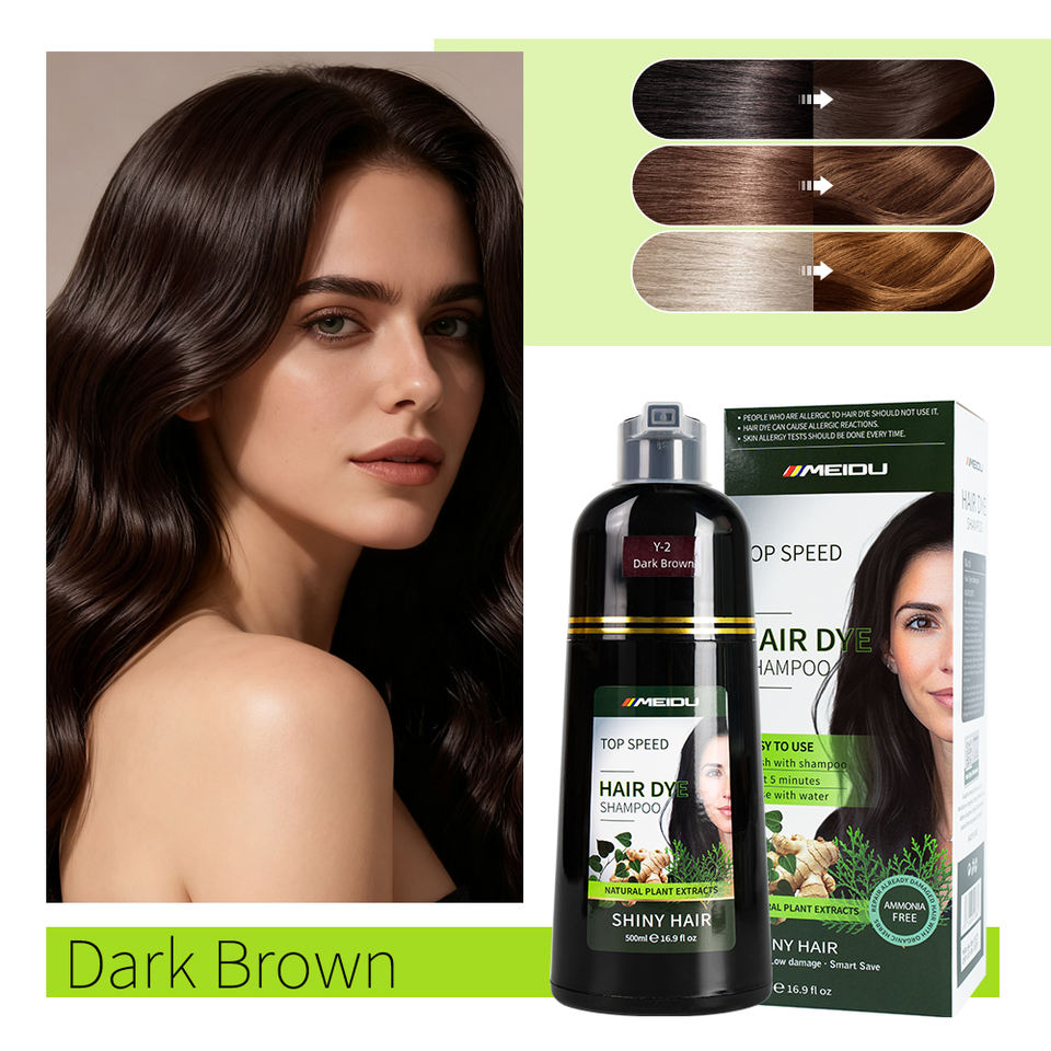แชมพูย้อมผมสีน้ำตาลเข้ม3อิน1สำหรับผมสีขาวเทาพืชไม่มีแอมโมเนียธรรมชาติ