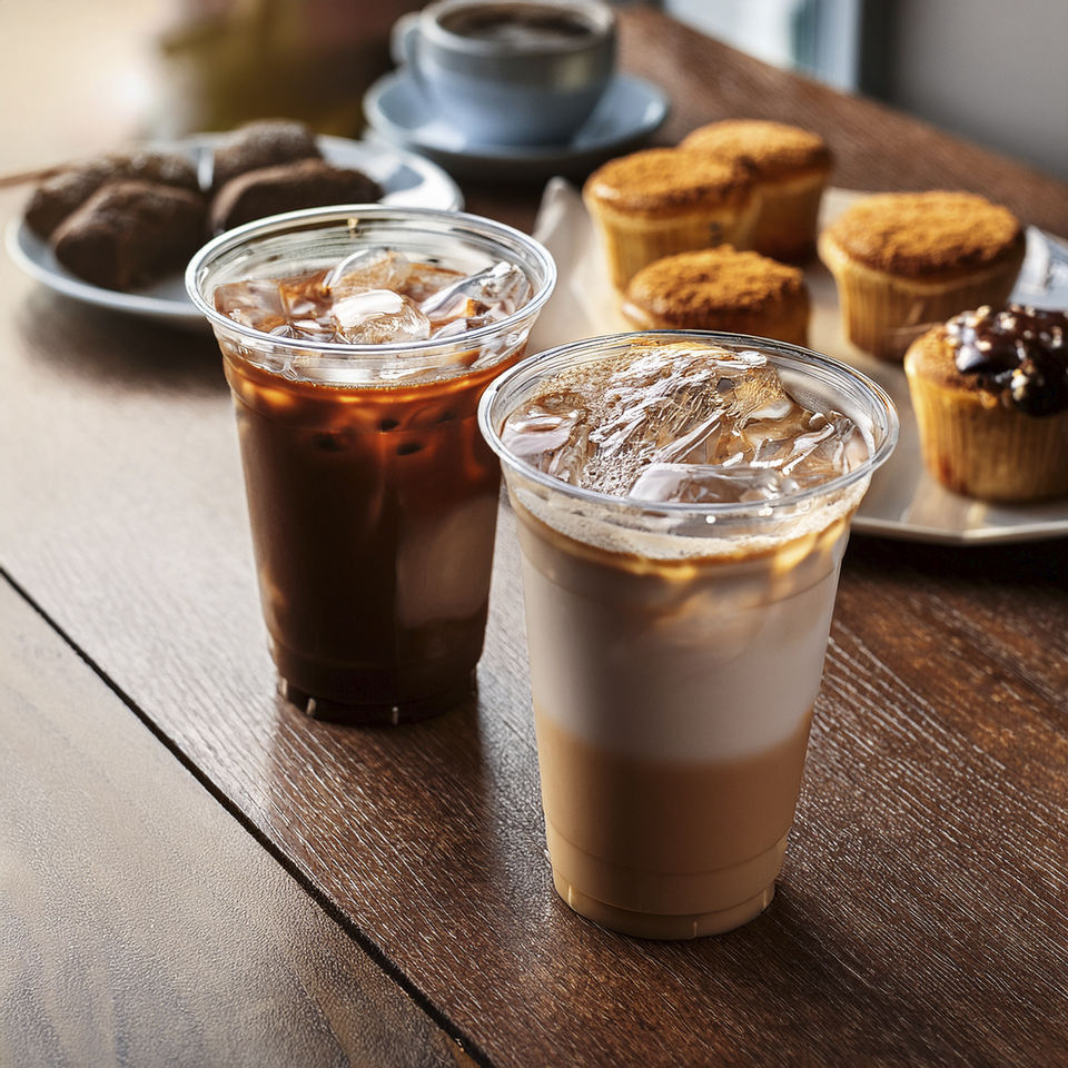ถ้วยพลาสติกแบบใช้แล้วทิ้งขนาด95มม. พร้อมฝาปิดถ้วย PET/PP สำหรับกาแฟเย็นและเครื่องดื่มเย็นและของหวานขนาด16/20/24ออนซ์ขายส่ง