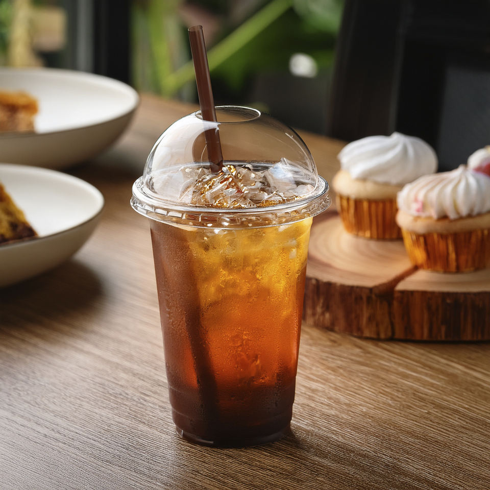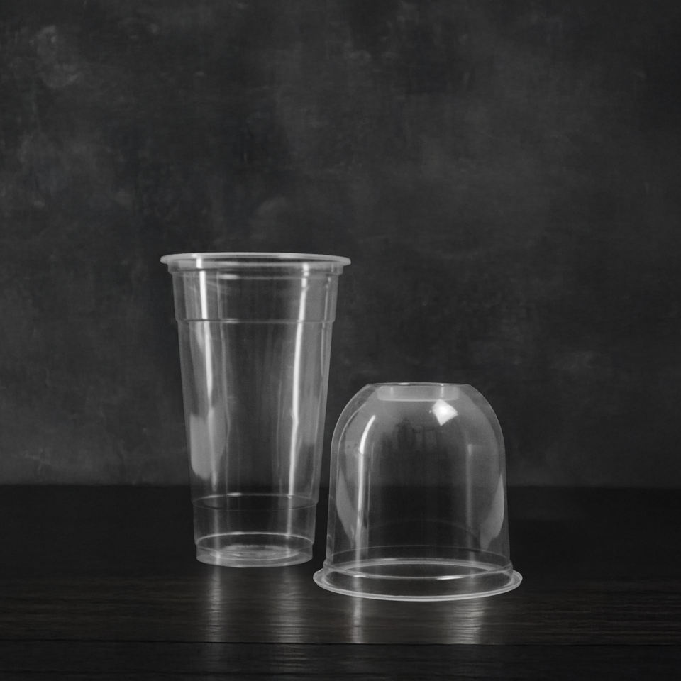 ถ้วยพลาสติก PP แบบใช้แล้วทิ้งขนาด95มม. พร้อมฝาปิด16/20/24ออนซ์ดีไซน์ผนังเดียวสำหรับเครื่องดื่มเย็นๆขนมหวานและเครื่องดื่ม