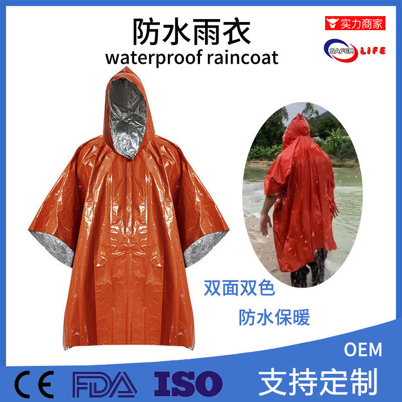 เสื้อกันฝนแบบใช้แล้วทิ้งสำหรับผู้ใหญ่ ขายส่ง ผ้าคลุมกันฝนแบบพอนโช กันน้ำ สำหรับใช้กลางแจ้ง ผ้าห่มฉุกเฉินแบบพกพา สองด้าน สองสี