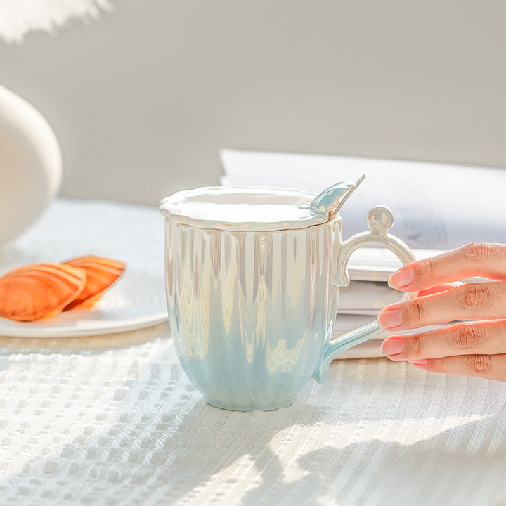 แก้วเซรามิกแบบใช้แล้วทิ้งสำหรับกาแฟและเครื่องสำอาง พร้อมฝาและช้อน ลายการ์ตูน ความจุ 401-500 มล. รับผลิตตามสั่ง สีและโลโก้ปรับแต่งได้