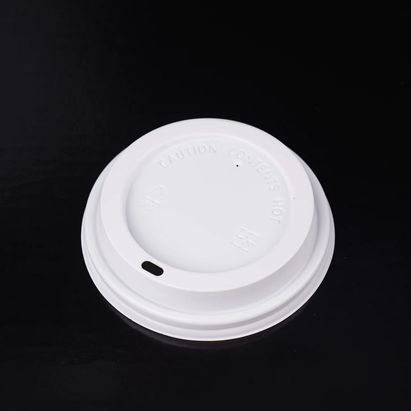 ฝาปิดแก้วกระดาษสำหรับเครื่องดื่มเย็น แบบใช้แล้วทิ้ง ผลิตจากพลาสติก PS สีขาว รูปทรงกลม ปากแบน รับผลิตตามสั่ง ขายส่ง