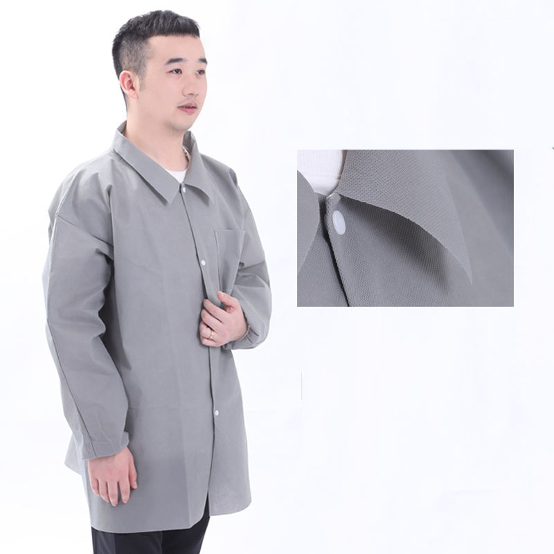 เสื้อโค้ทแพทย์แบบใช้แล้วทิ้งสำหรับผู้ชายและผู้หญิงเสื้อโค้ทสำหรับใช้ในห้องแล็บวัสดุ SMS/Spunlace/PP
