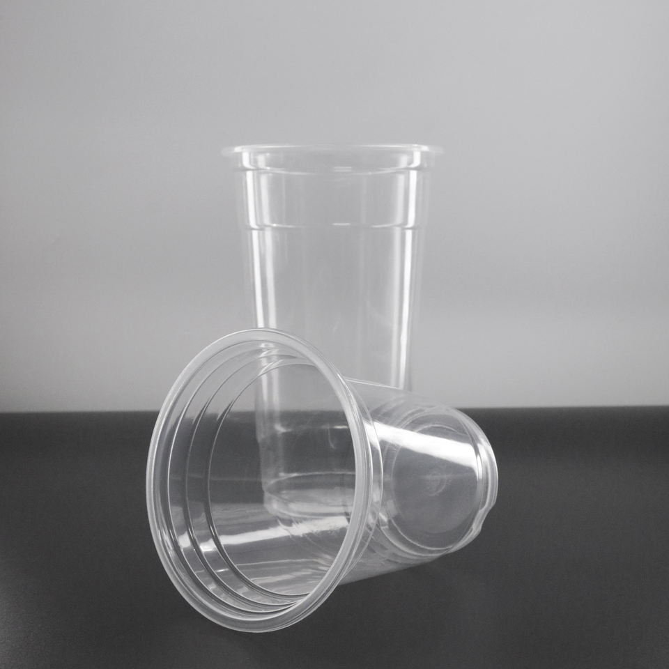 ถ้วยพลาสติก PP ใสแบบใช้แล้วทิ้ง95มม. ดีไซน์ผนังเดียวสำหรับเครื่องดื่มเย็นสมูทตี้ออกแบบโลโก้ได้ตามต้องการ