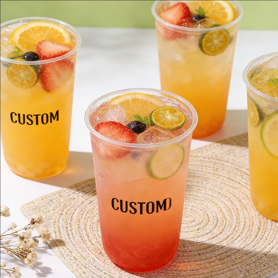 แก้วพลาสติก PP แบบใช้แล้วทิ้ง ทรงกลม ขนาด 90 มม. 22 ออนซ์ 700 มล. พิมพ์ลาย UV พร้อมโลโก้ตามสั่ง สำหรับชานมไข่มุก ไอศกรีม และของหวาน ขายส่ง