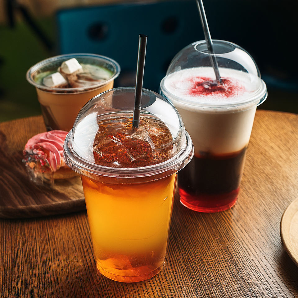 ถ้วยพลาสติกแบบใช้แล้วทิ้งขนาด95มม. ดีไซน์ผนังเดียวสำหรับชากาแฟเย็นและเครื่องดื่มจากโรงงาน