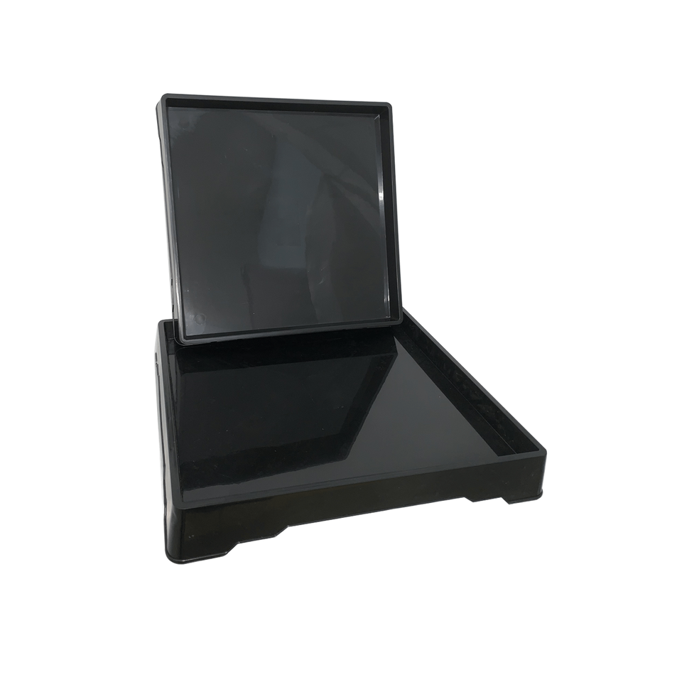 ถาดพลาสติก PP ทรงสี่เหลี่ยมแบบใช้แล้วทิ้งสำหรับกล่องบรรจุอาหารถาดเก็บซูชิพร้อม HDB40สำหรับพิซซ่าสลัดเค้ก
