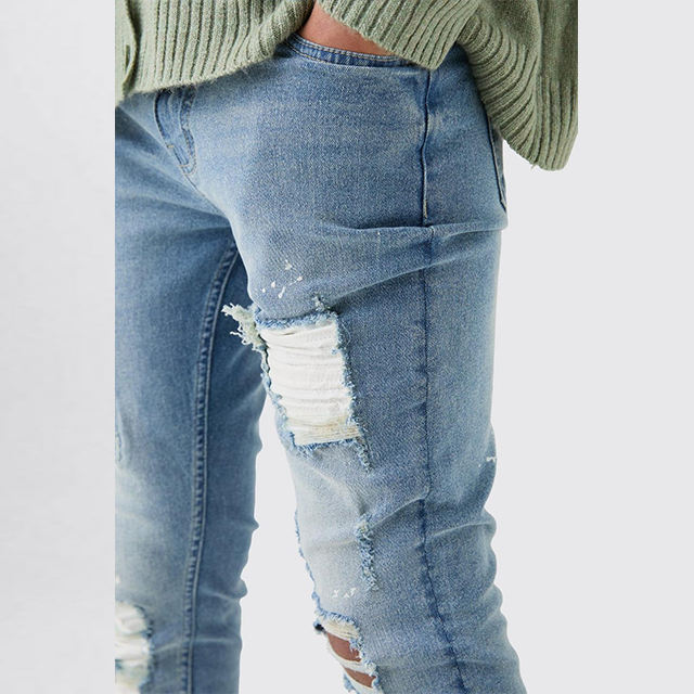กางเกงยีนส์ผู้ชายทรงสลิมฟิต ดีไซน์ขาดๆ เซอร์ๆ คุณภาพสูง แฟชั่นใหม่ล่าสุด ขายส่ง