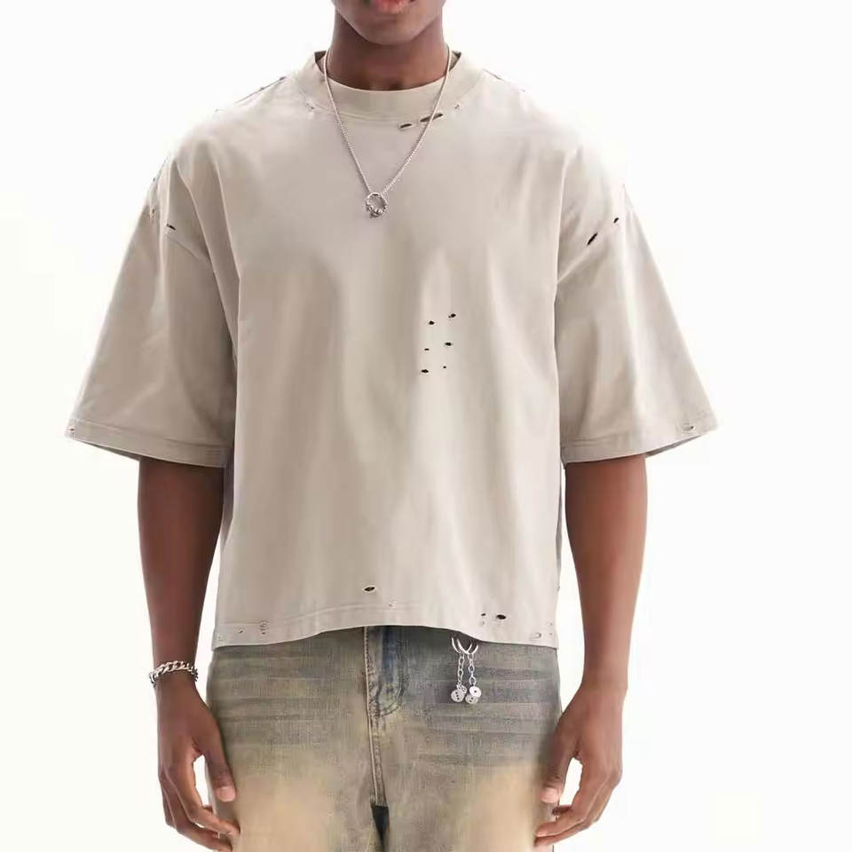 เสื้อยืดดิสเทรสขายส่ง เสื้อยืดลำลองสำหรับผู้ชาย ใส่ได้ในฤดูร้อน เสื้อยืดดิสเทรสขายออนไลน์