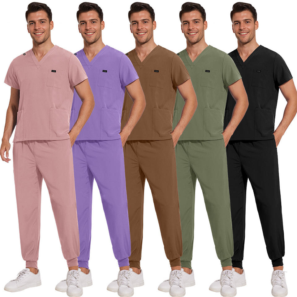 ชุดเครื่องแบบแพทย์ชุดผ่าตัดคอวีสำหรับผู้ชายชุดยูนิฟอร์มโรงพยาบาลชุดพยาบาลออกแบบได้ตามต้องการ