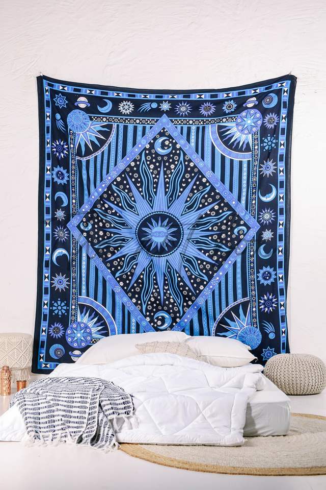ผ้าแขวนผนังลายดอกไม้แมนดาลาแบบอินเดีย สำหรับหอพัก ขายส่ง ทำจากผ้าฝ้าย 100% ซักเครื่องได้ ขนาด 95x85 นิ้ว ของตกแต่งบ้าน