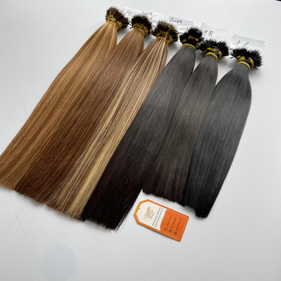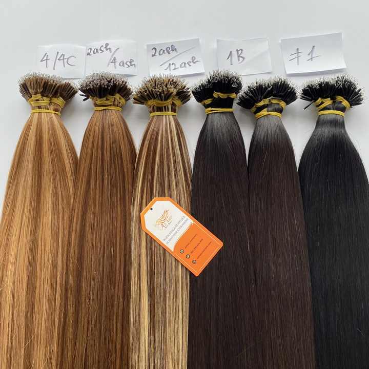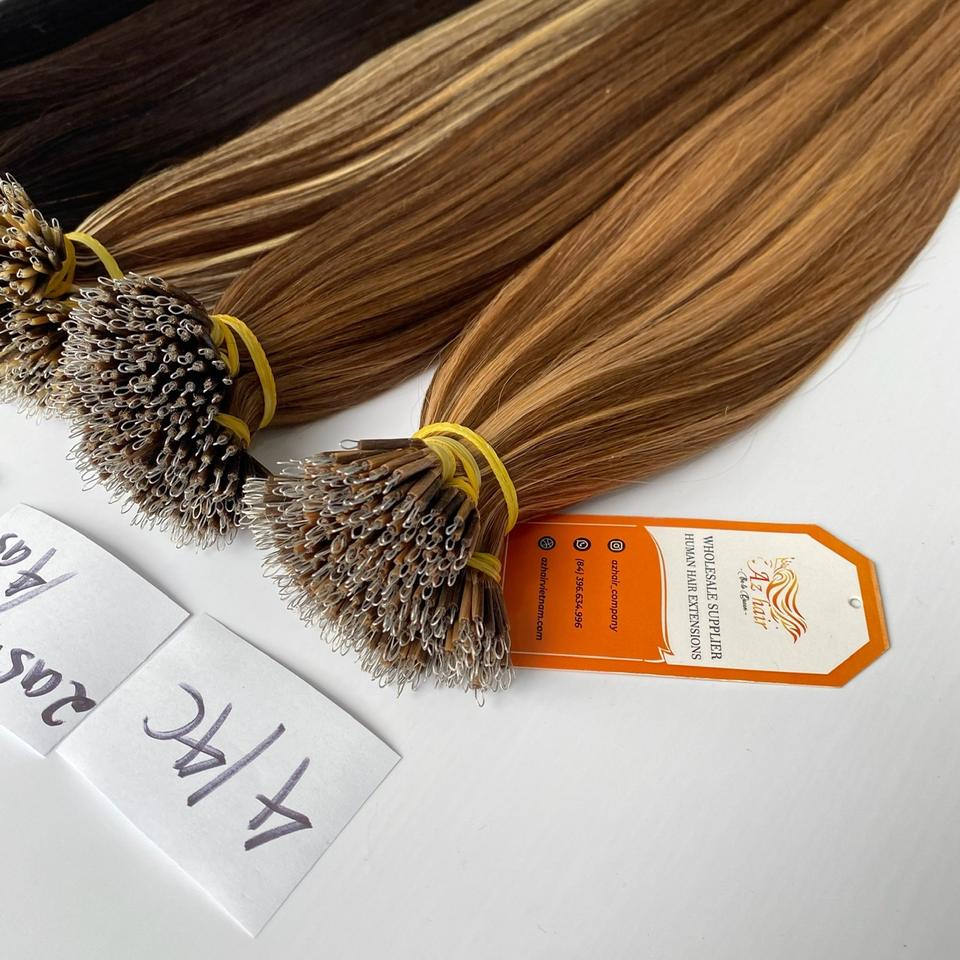 ขายส่งผมมนุษย์ดึงคู่ 100% ที่ยังไม่ได้แปรรูป Remy เคราตินนาโนเคล็ดลับนาโนแหวนต่อผม