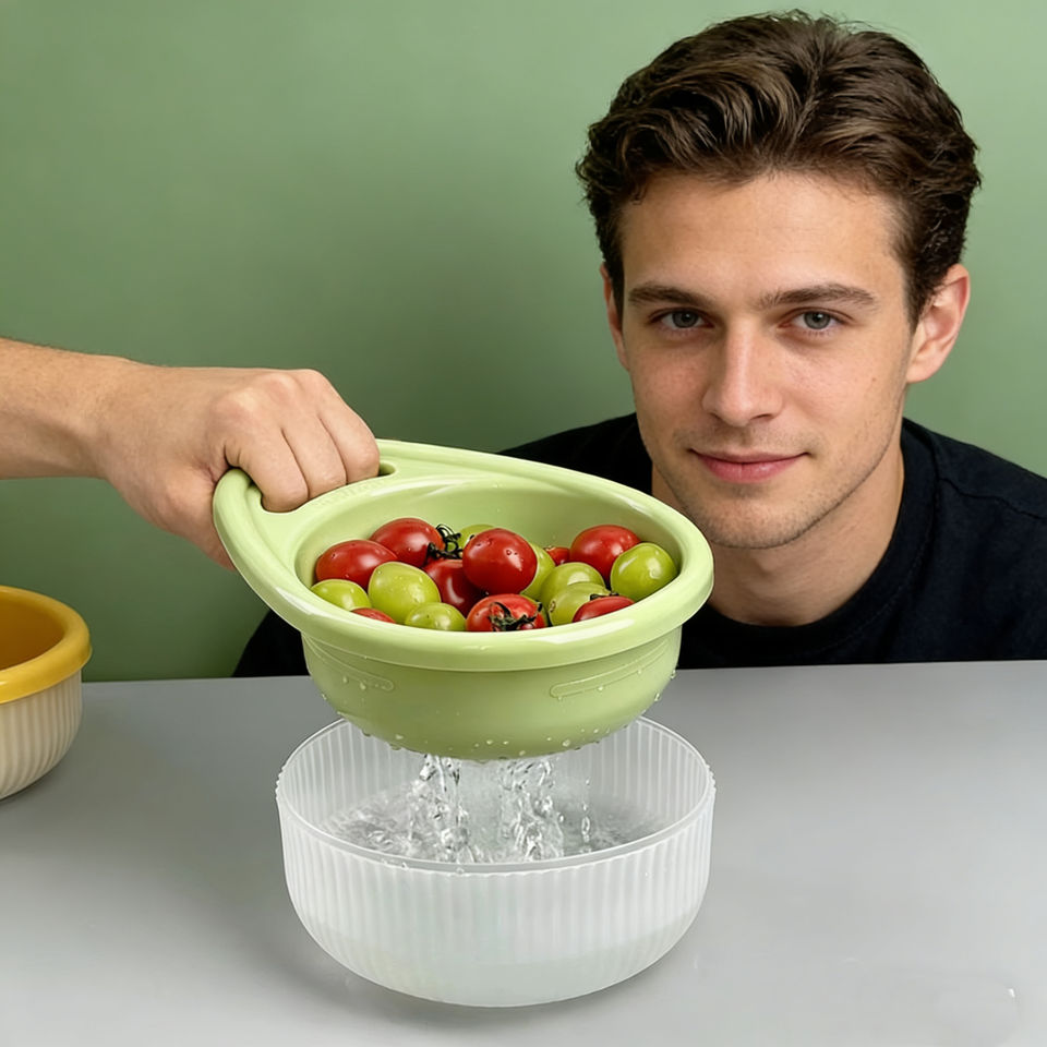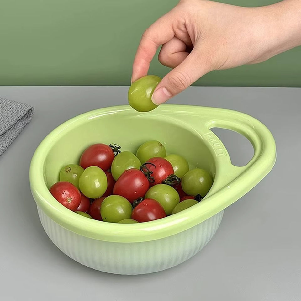 อ่างล้างผักผลไม้พลาสติกแบบพกพาสองชั้น ใช้งานมือเดียว พร้อมคุณสมบัติระบายน้ำและป้องกันน้ำกระเด็น ขายส่ง