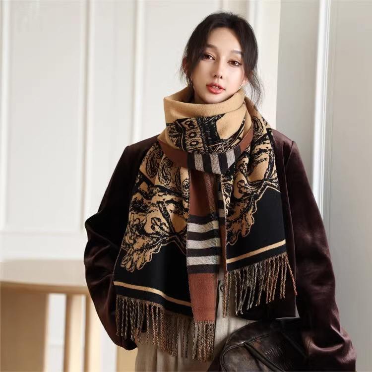 ผ้าพันคอไหมพรมเทียมสองด้าน น้ำหนักเบา ระบายอากาศได้ดี ลายแจ็คการ์ด ขนาด 43x200 ซม. ผ้าคลุมไหล่หนาสำหรับฤดูหนาว