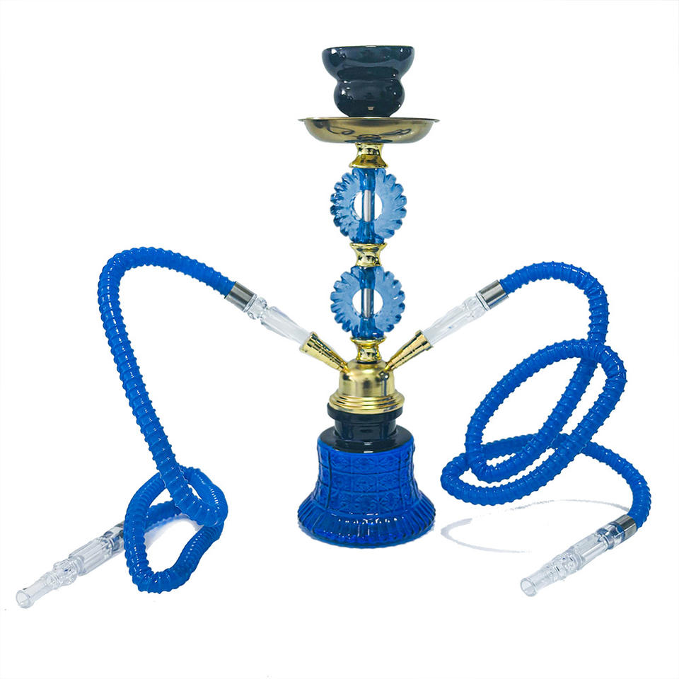AT-hookah แก้วอลูมิเนียมสีฟ้า30cm บันไดเหล็กเคลือบเงามอระกู่เทคนิคอาหรับขนาดเล็กสูงชุดของขวัญที่กำหนดเองผลิต