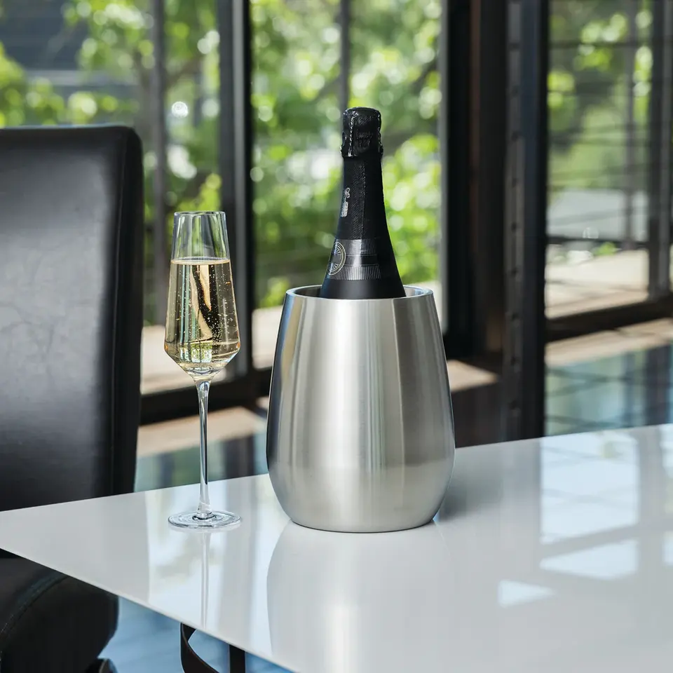 ตู้แช่ขวดสแตนเลสผนังสองชั้นที่เก็บไวน์แชมเปญคูลเลอร์พร้อมโลโก้ที่กำหนดเองสำหรับบาร์ปาร์ตี้และใช้งานกลางแจ้ง