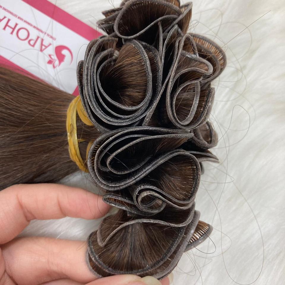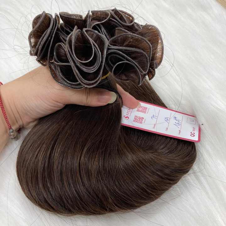 ผมต่อทำจากผ้าสองชั้นอัจฉริยะผมคนผมตรงสีน้ำตาลเข้มแบบ Remy
