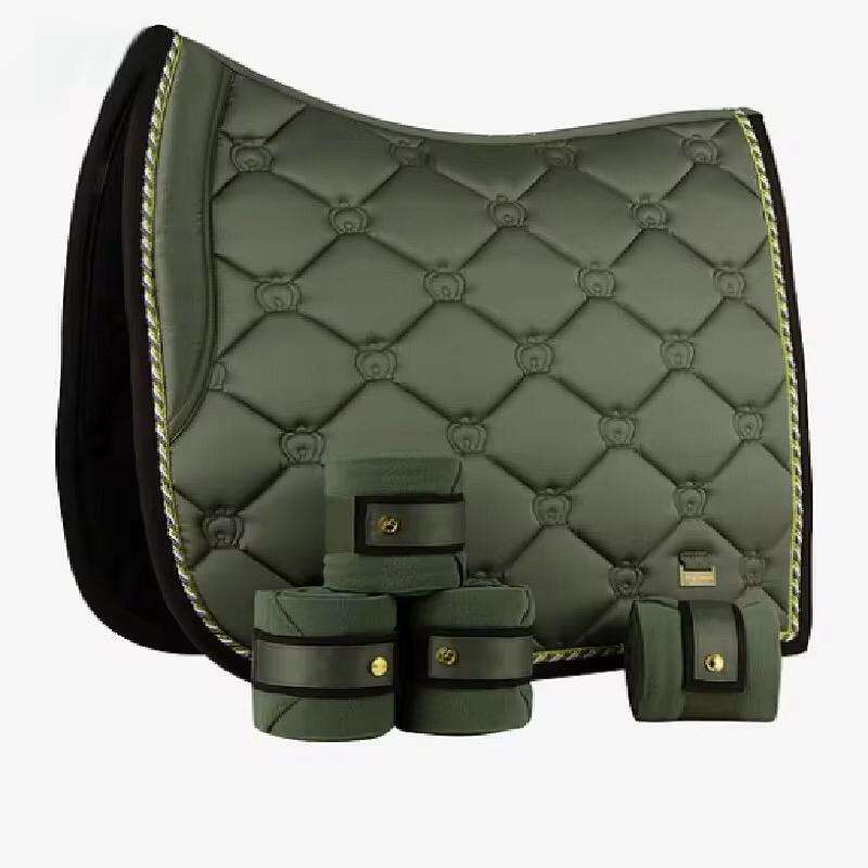 อุปกรณ์ขี่ม้าเดรสสาจขายส่ง แผ่นรองอานม้าที่สวมใส่สบายและระบายอากาศได้ดี ชุดม้าผ้าฝ้ายแบบกำหนดเอง OEM พร้อมซับในโพลีคอตตอน