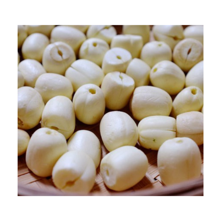 เมล็ดบัวอบแห้งสีขาวแบบกินได้มีผิวเรียบและมีแกนสีขาว