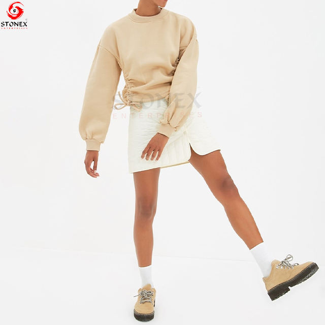 เสื้อสเวตเตอร์แขนยาวจับจีบด้านหน้าเปิดไหล่เสื้อสเวตเตอร์ให้ความอบอุ่น