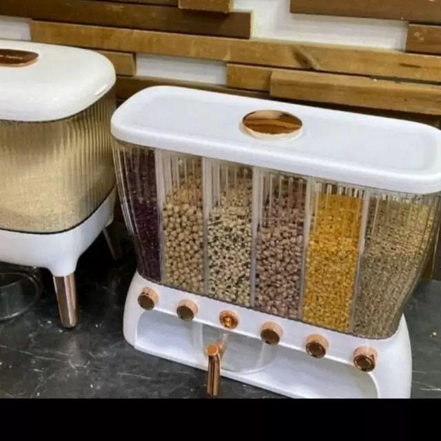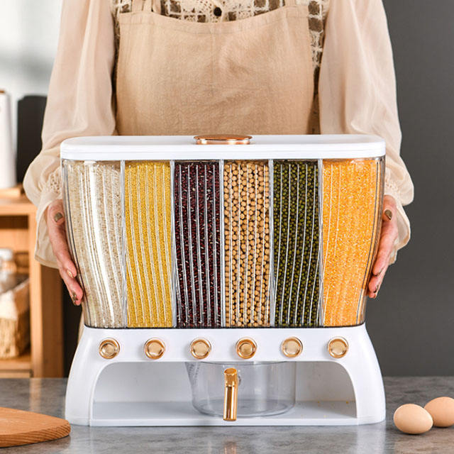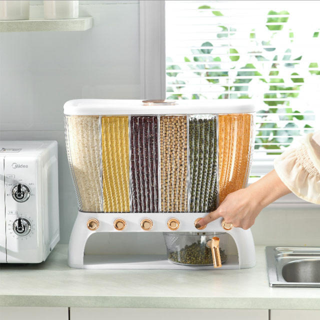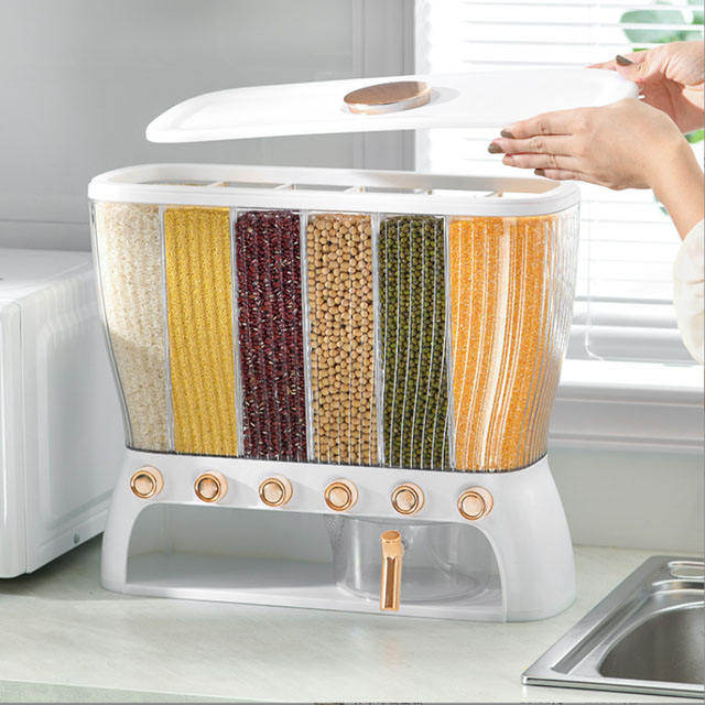 Wholesale Dry Food Storage Containers Dispenser 6 Grids Grain Rice Plastic Storage Box Open Lids Cereal Seal Pot