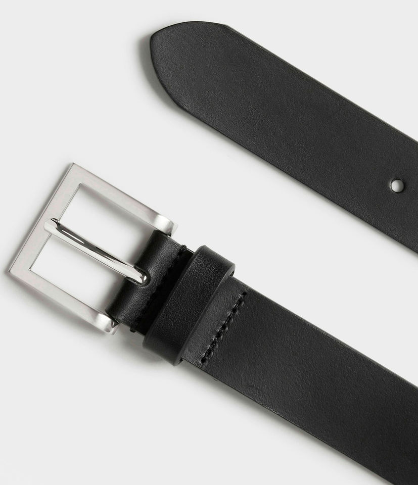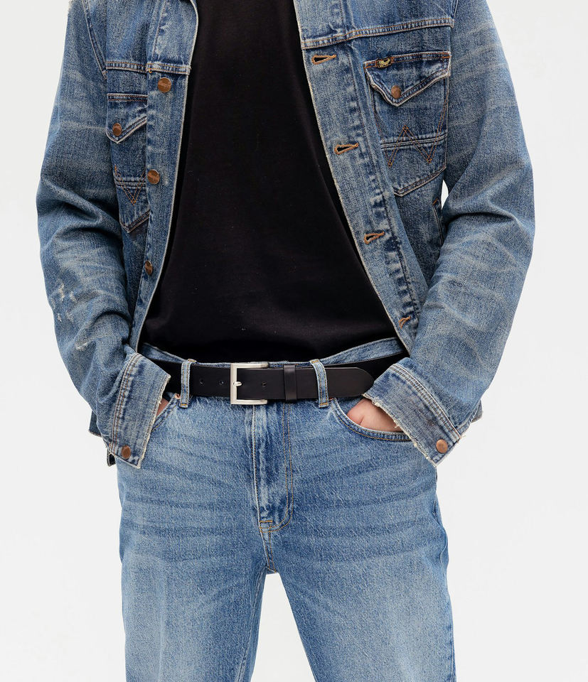 เข็มขัดหนังวัวแท้สีดำหัวเข็มขัดทองแดงแบบเข็มที่ทนทานสำหรับผู้ชาย