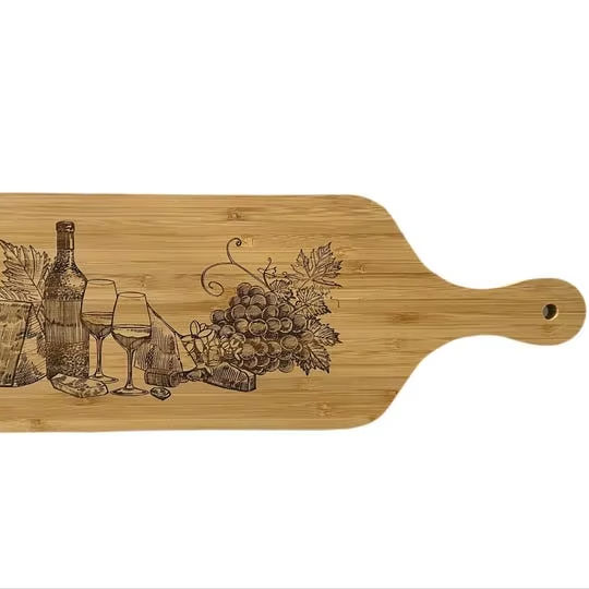 เขียงไม้ไผ่ทนทานแผ่นรองชีสทำจากสแตนเลสและไม้มะม่วงธรรมชาติสำหรับห้องครัว