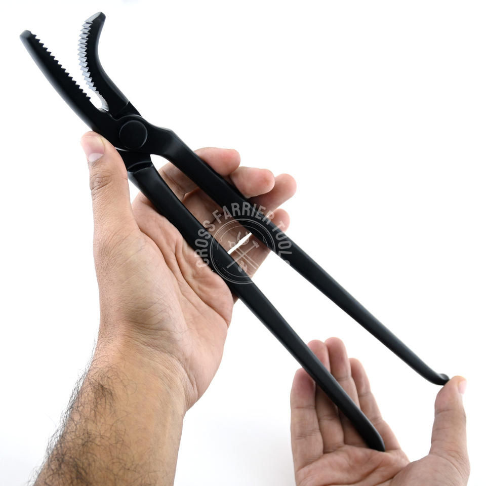 คีมตัดเล็บม้าสแตนเลสเคลือบสีดำ ทนทาน ขนาด 13 นิ้ว สำหรับช่างตัดแต่งกีบม้า ปากคีบโค้ง จับถนัดมือ