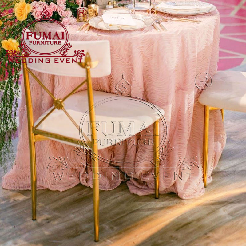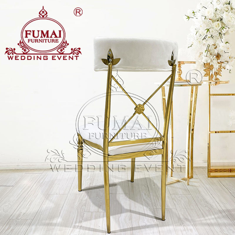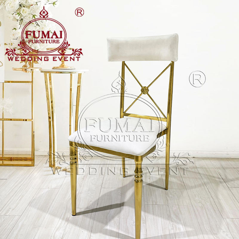 เก้าอี้จัดเลี้ยงงานแต่งงานทันสมัยทำจากสแตนเลสแข็งแรงทนทานพร้อมพนักพิงแบบไขว้ สำหรับใช้ในห้องรับแขกและวิลล่า ขายส่ง