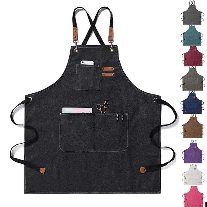ผ้ากันเปื้อนผ้าใบสำหรับเชฟที่ผ่านการซักที่ทนทานผ้ากันเปื้อนสำหรับบาร์และร้านอาหารพร้อมสายรัดที่สามารถถอดออกได้