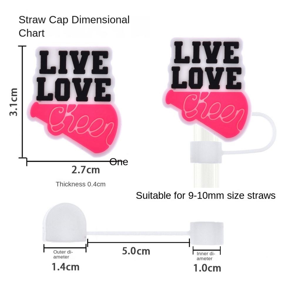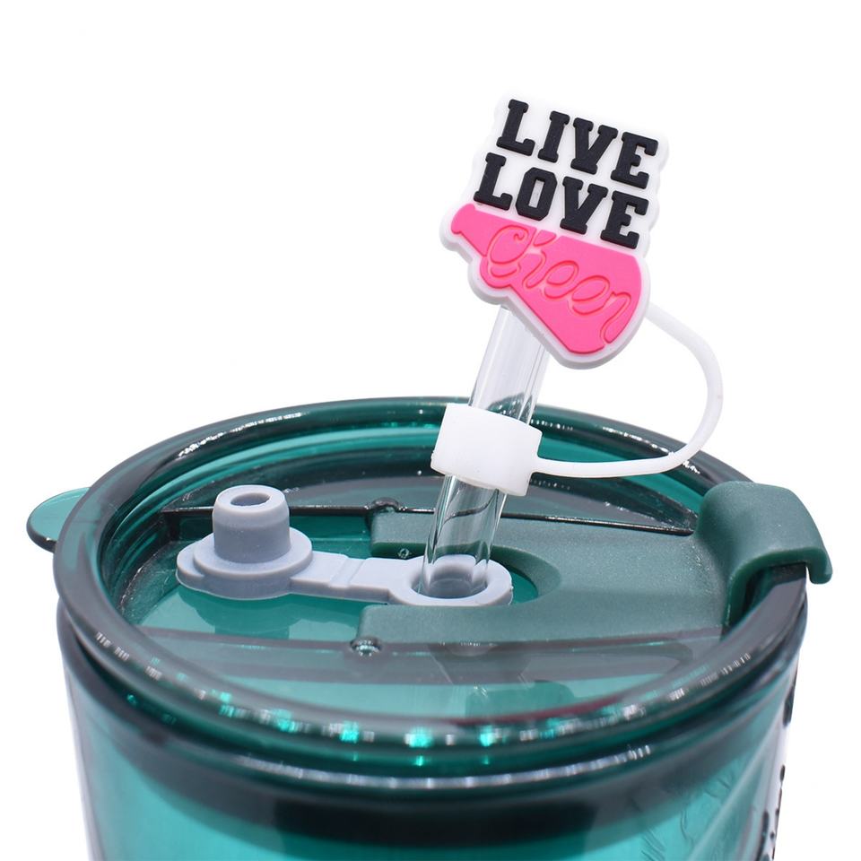 หลอดดูดน้ำกันฝุ่นแบบขายส่ง ขนาด 10 มม. พร้อมจุกปิดหลอดแบบ PVC สำหรับเชียร์ลีดเดอร์ ตกแต่งด้วยจี้ห้อย