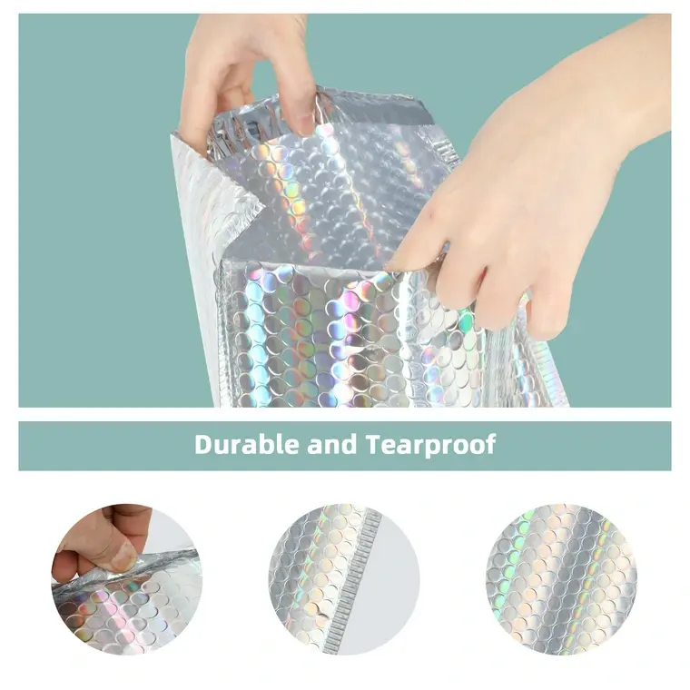 ซองจดหมายกันกระแทกโพลีเมอร์ฟองเมลเลอร์ทำจากโลหะเป็นมิตรกับสิ่งแวดล้อมออกแบบโลโก้ได้ตามต้องการสำหรับร้านขายของชำซูเปอร์มาร์เก็ต