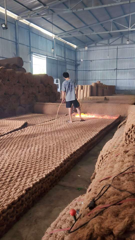 แผ่นใยมะพร้าวแบบม้วนทอมือจากเวียดนามแผ่นใยมะพร้าวสำหรับปูถนนลูกรังสไตล์คลาสสิกเป็นมิตรกับสิ่งแวดล้อม