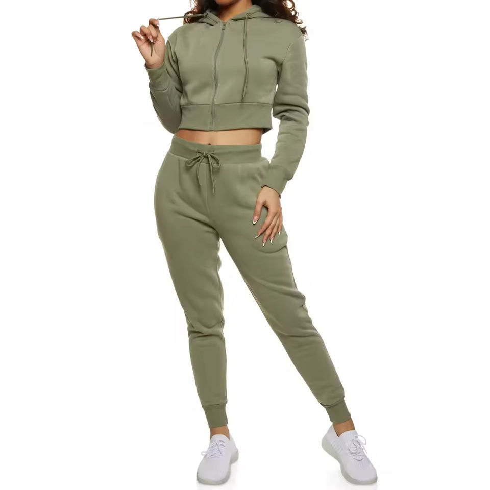 ชุดวอร์มผ้าฟลีซสำหรับผู้หญิงแบบขายส่ง เป็นมิตรกับสิ่งแวดล้อม ออกแบบโลโก้ได้ตามต้องการ พร้อมสีและขนาดที่กำหนดเองได้