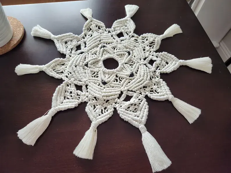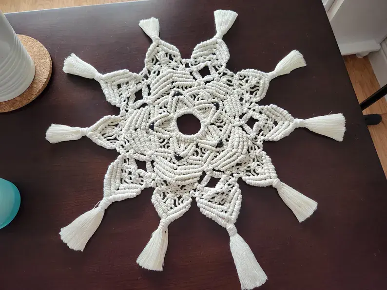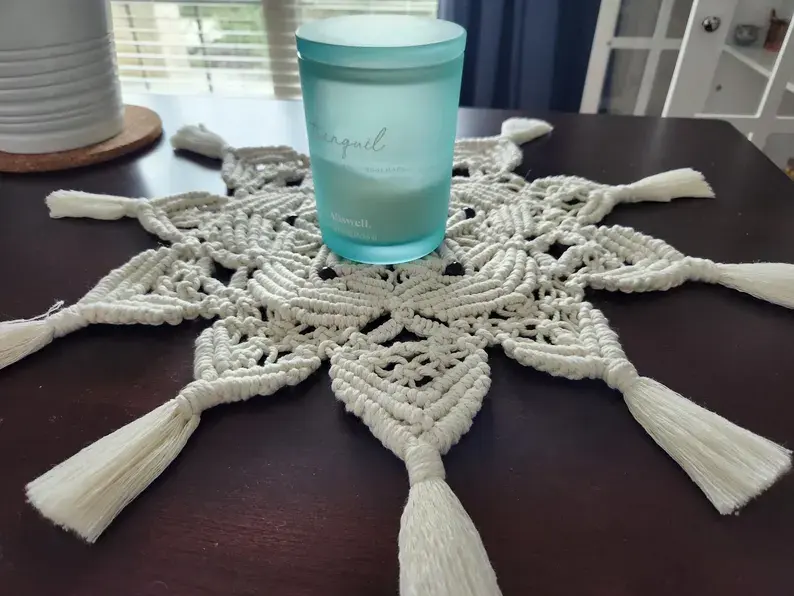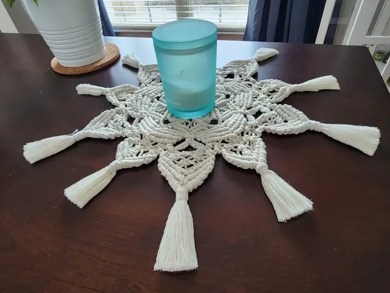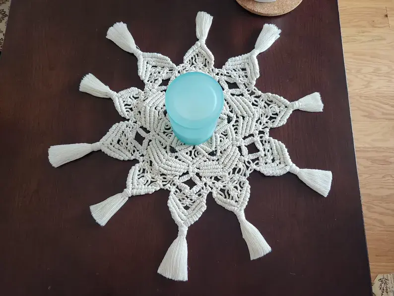 แผ่นรองจานสานเชือกฝ้ายแบบมาคราเม่ ขนาดสั่งทำได้ เป็นมิตรกับสิ่งแวดล้อม ตกแต่งด้วยพู่ห้อย สไตล์โบโฮ สำหรับโต๊ะกาแฟ ขายส่ง