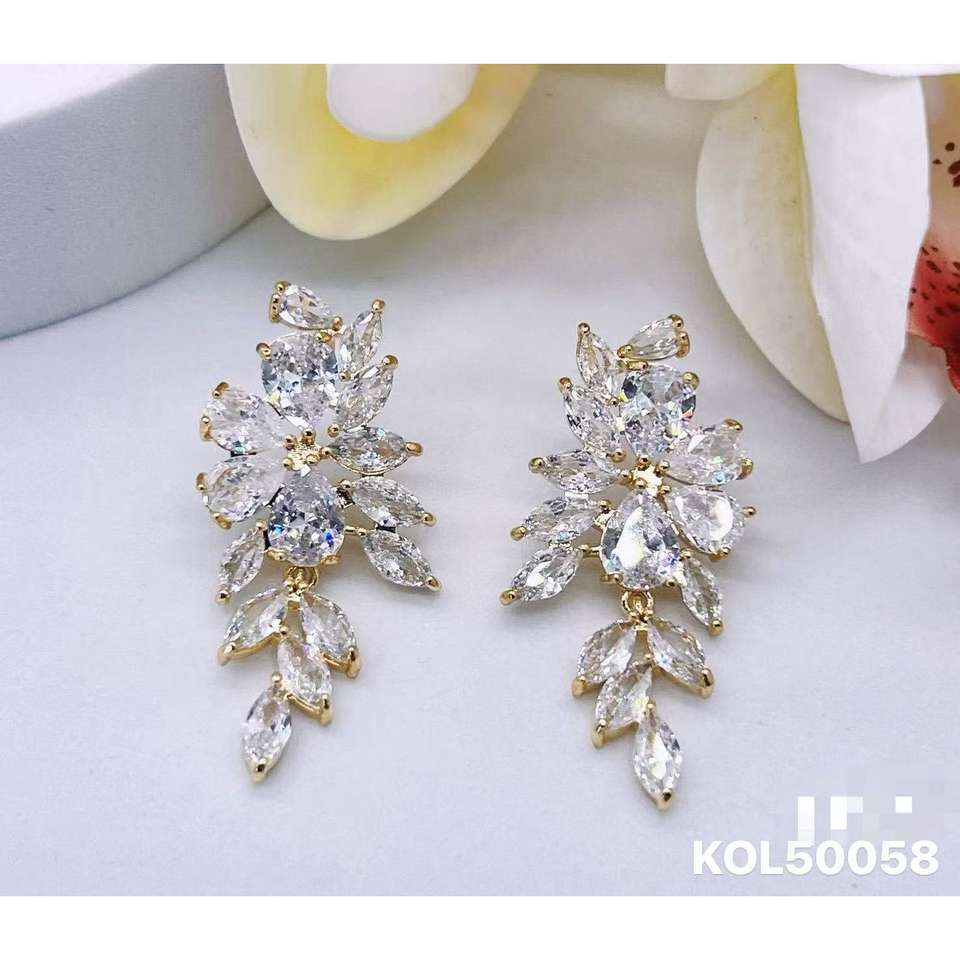 ต่างหูแฟชั่นทองแดงชุบทองเป็นมิตรกับสิ่งแวดล้อมเครื่องประดับทางกายภาพของขัดเพทายฝังอยู่ในระดับไมโคร