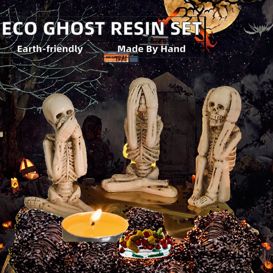 ชุดตกแต่งงานฝีมือเรซิ่นรูปผีสยองขวัญสามตัว สำหรับเทศกาลฮาโลวีน คริสต์มาส และเทศกาลอนิเมะ แบบขายส่ง เป็นมิตรกับสิ่งแวดล้อม