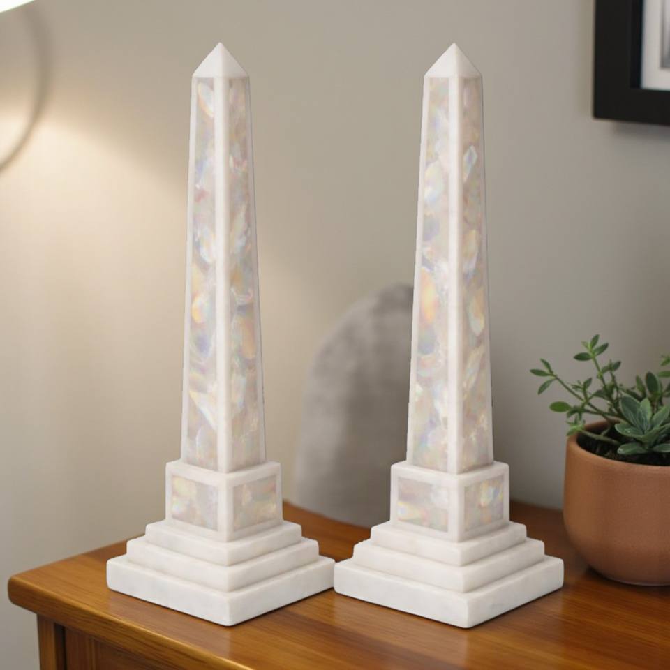 ขายส่งคู่เสาหินมุกธรรมชาติรักษ์โลก งานฝีมือตกแต่งบ้านสไตล์โมเดิร์นด้วยคริสตัล สำหรับตกแต่งบ้านหรู