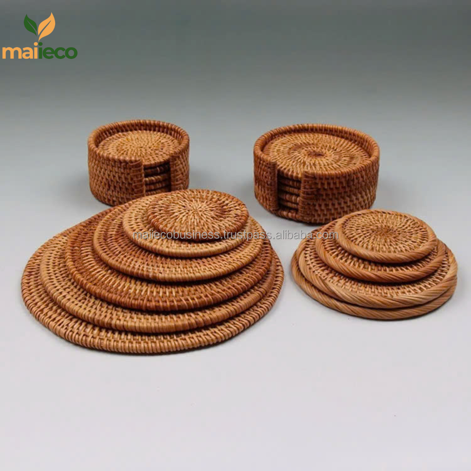 ที่รองแก้วหวายแบบชนบทที่รองแก้วที่รองแก้วดีไซน์ใหม่เป็นมิตรต่อสิ่งแวดล้อมสำหรับห้องนั่งเล่นที่ชาร์จจานหวายจากเวียดนาม