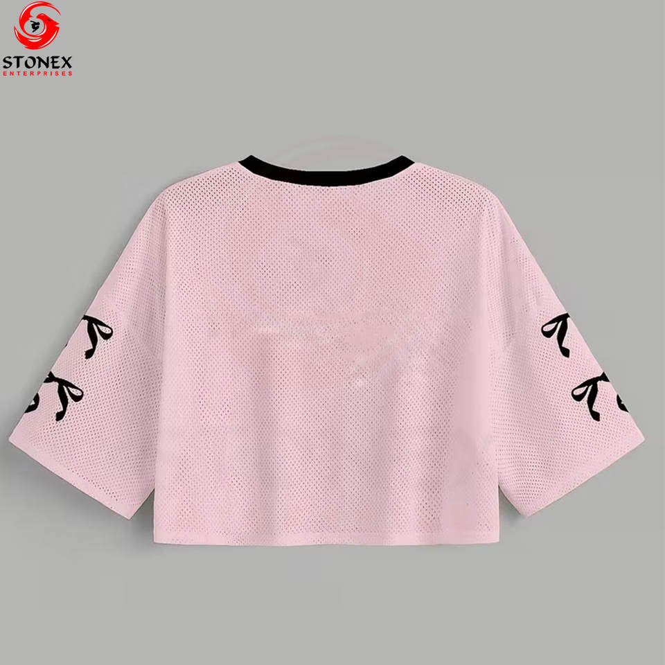 เสื้อครอปท็อปตาข่ายสไตล์สปอร์ตสำหรับผู้หญิง ขายส่ง เป็นมิตรกับสิ่งแวดล้อม พร้อมโลโก้สั่งทำ ผ้าระบายอากาศได้ดี คุณภาพสูง สำหรับฤดูร้อน