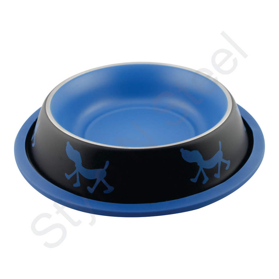ชามให้อาหารสัตว์เลี้ยงทำจากสเตนเลสสตีลสีน้ำเงินเข้มพร้อมขอบกันลื่นเป็นมิตรต่อสิ่งแวดล้อม