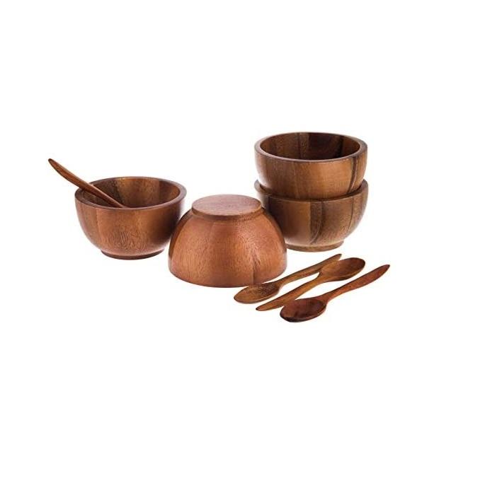 ชามไม้ขนาดเล็กแบบเป็นมิตรต่อสิ่งแวดล้อมสำหรับขายส่ง รับทำโลโก้ ชามไม้ขนาดเล็กสำหรับผสมอาหารหรือสลัด พร้อมช้อนไม้